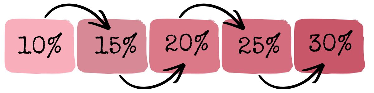 Du startest in den ersten drei Monaten mit 10 % Treuepunkten, die du vom Wert deiner Bestellung gutgeschrieben bekommst. Danach steigert sich dein Bonus alle drei Monate um 5 % – bis zu 30 % nach einem Jahr! Diese Punkte kannst du für kostenlose Produkte einlösen.